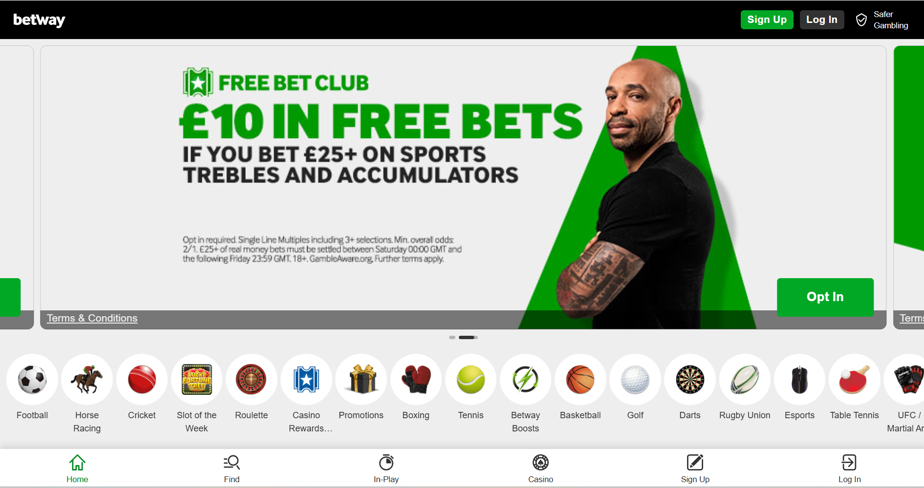 Among the finest Non Gamstop Casinos and betting destinations, Betway distinguishes itself through an exceptionally broad selection of sports markets, encompassing football, horse racing, tennis, cricket, basketball, esports, and beyond. Major tournaments such as the Premier League and Grand National receive extensive coverage, with hundreds of wagering options ranging from straightforward match results to granular player proposition bets. Standout features include Bet Builders, cash-out functionality across numerous markets, accumulator enhancement tools, and the Free Bet Club, which rewards returning members with weekly free bets when placing eligible multiple wagers. New UK members are typically greeted with a matched free bet as a welcome incentive.